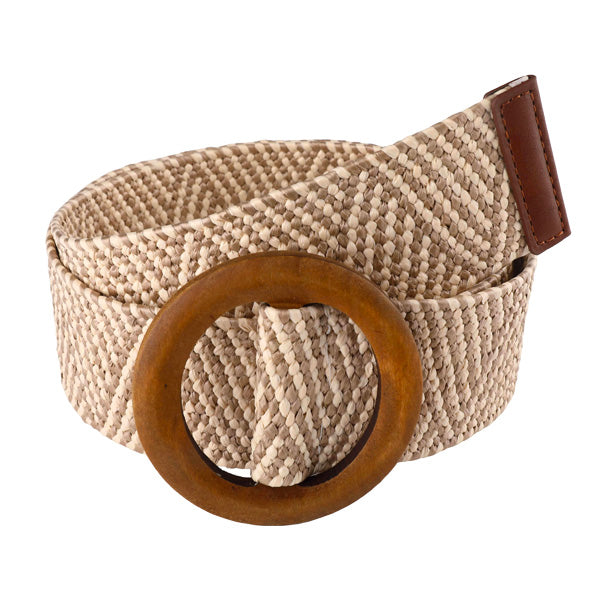 Beige-Brown Soft Style Women's PP-based PU Belt Wooden Buckle HR-010