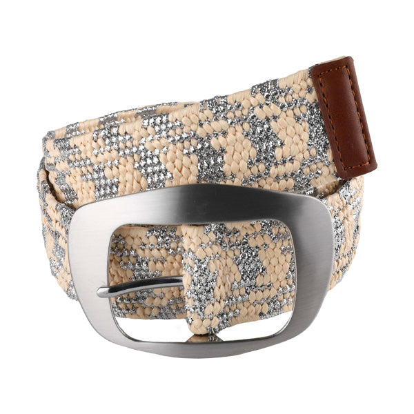 Delicate Slim Beige-Silver Women's PP Material PU Belt HR-004