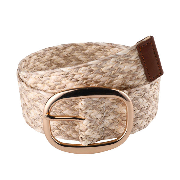 Delicate Slim Beige Women's PP Material PU Belt Zinc Alloy Buckle HR-001