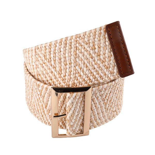 Office Versatile Beige-Brown Color Block Women's PP-based PU Belt HR-009
