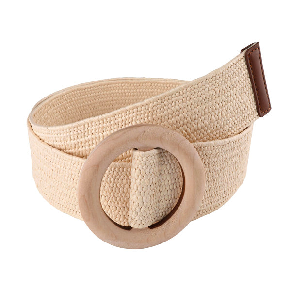Soft Beige Women's PP-based PU Belt Wooden Slim Buckle HR-006