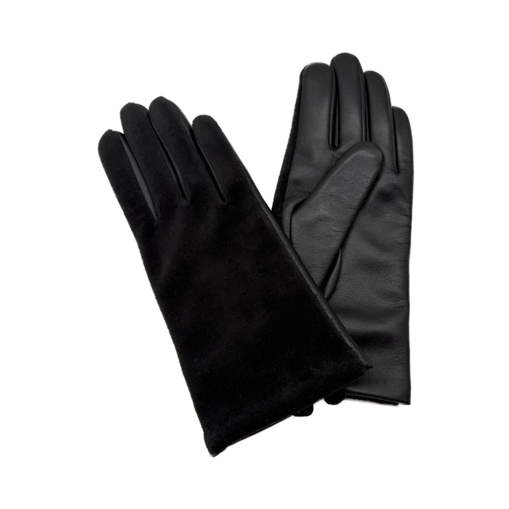 Women's Winter Black Genuine Leather Gloves with Plush, Wool & Cashmere, Luxury and Warmth 25AW-006