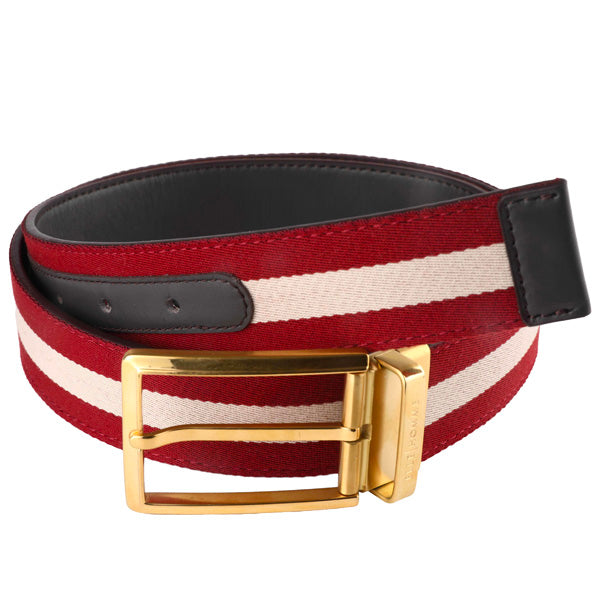 潮款红色涤纶PU拼接皮带锌合金扣头 PC-002